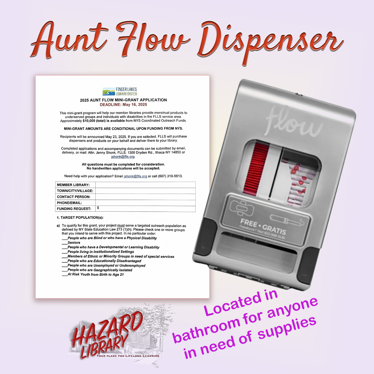 Please check out more information on this goal and consider providing a donation by clicking on the PayPal logo below or by sending a check to “Hazard Library Association” (PO Box 3, Poplar Ridge, NY 13139).